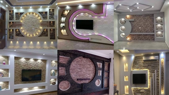 - الحجر الصناعي: في المساحات الراقية أو التجارية، يمكن استخدام الحجر الصناعي كعنصر مدمج مع الجبس بورد لإعطاء التصميمات مظهرًا قويًا وفاخرًا.
