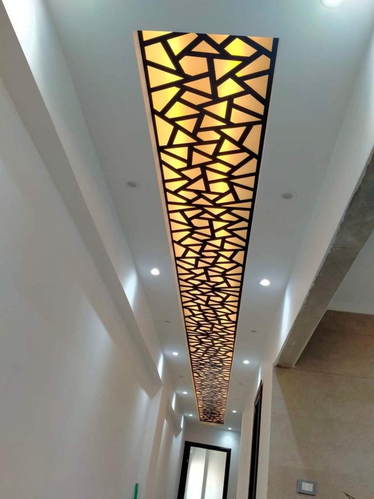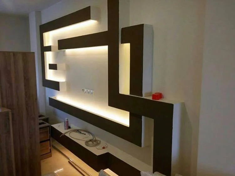• تصميم الأسقف المعلقة (السقف المستعار): الأسقف المعلقة المصنوعة من الجبس بورد تعطي مظهرًا عصريًا وحديثًا. يمكن دمج إضاءات مخفية LED داخل هذه الأسقف للحصول على إضاءة ناعمة وجو مريح.